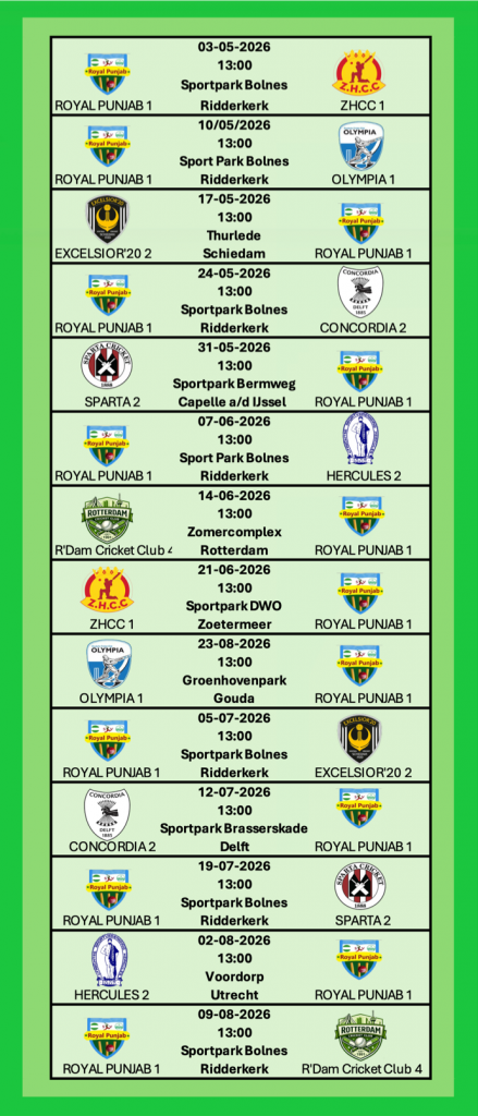 Wedstrijdschema KNCB 2026 SV Royal Punjab 2