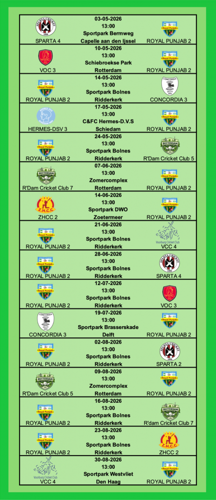Wedstrijdschema KNCB 2026 SV Royal Punjab 2